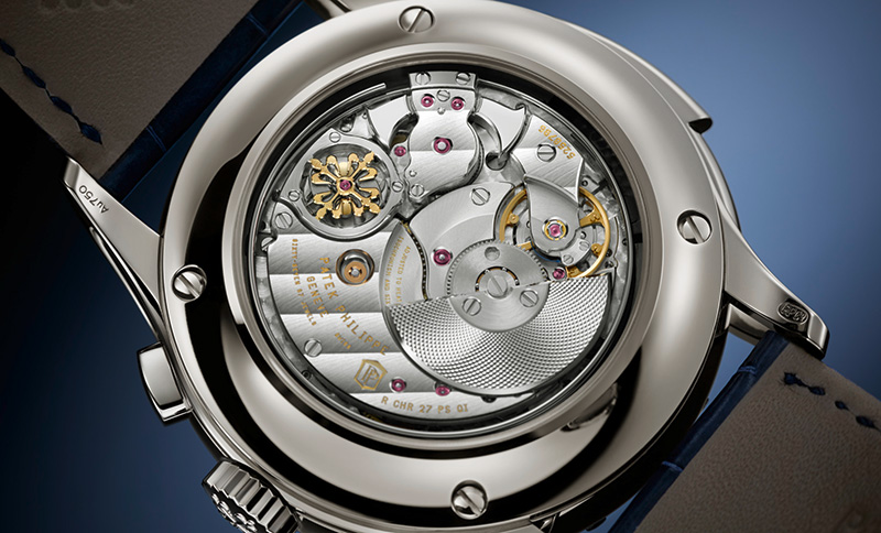 Die außergewöhnliche mechanische Leistung ist ein Verdienst des neu entwickelten Automatikkalibers R CHR 27 PS QI. Das Uhrwerk mit seinen 799 Einzelteilen bietet eine Gangreserve von 38 bis 48 Stunden bei gestopptem Chronographen. Patek Philippe hat den Mechanismus im Vergleich zu seinen Vorgängern um 80 Bauteile erweitert, um den energieintensiven Schleppzeiger-Chronographen perfekt zu integrieren.